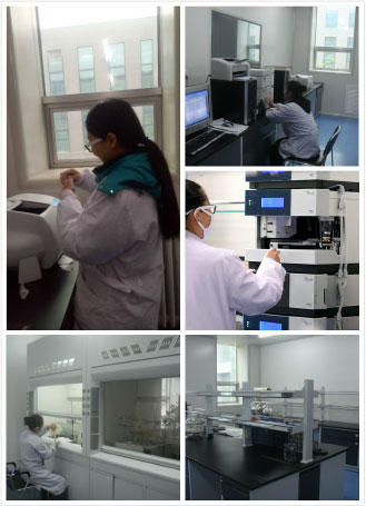 分析檢測中心具有功能齊全的理化實驗室,精密儀器實驗室、普通儀器室、理化實驗室、氣相實驗室等,配備了國內外先進的檢測設備:高效液相色譜儀、氣相色譜儀、凱氏定氮儀、紫外分光光度計、原子吸收分光光度計等。檢測中心成立以來,已經建立獨有的檢測方法60余種,建立科學嚴謹的質量標準,實現質量控制。